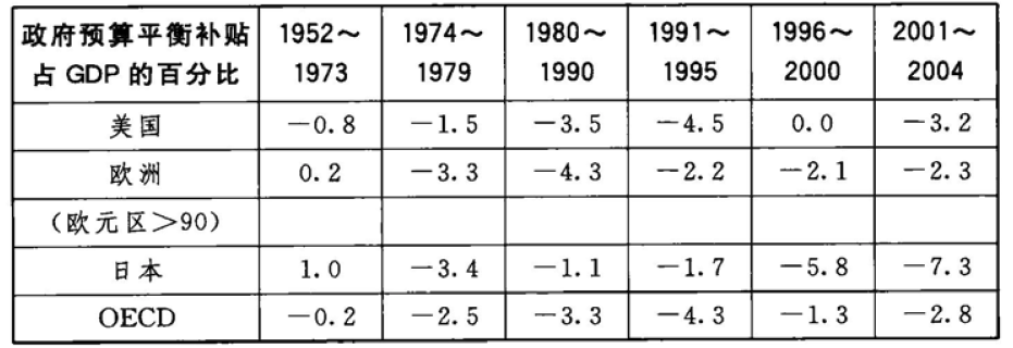 在20世纪80年代经济衰退的早些时候,英国撒切尔政府拒绝以扩张性的财政政策维持需求和就业,并代之以审慎的紧缩性政策。无独有偶,1992年美国克林顿的行政内阁也曾拒绝扩张性财政政策以削减财政赤字。此外,欧盟也采取积极的限制性政策,最终达成稳定与增长协议,并承诺在这个经济周期中平衡一般预算。