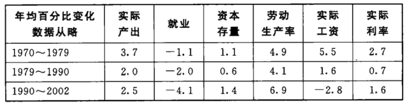 从表2.2中可知,股本加速增长的幅度很小,那些希望更快地引进新技术的人对此一定会感到非常失望。然而,就业的趋势则更戏剧化一些:这些部门的就业率已经持续下降了很长一段时间,但它的下降在20世纪80年代私有化之前突然加速了,到90年代,下降的速度甚至更快。连续12年的每年4%的失业增长率意味着,从1990年以来,劳动力已经减少了将近一半,这种优化的影响就是劳动生产率的迅速提高[1]。