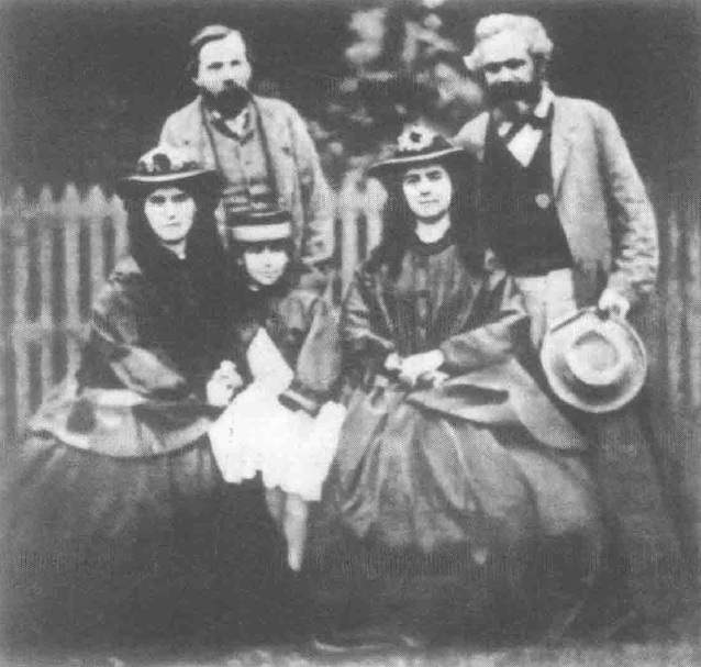 恩格斯与马克思及马克思的三个女儿(1864年,伦敦)