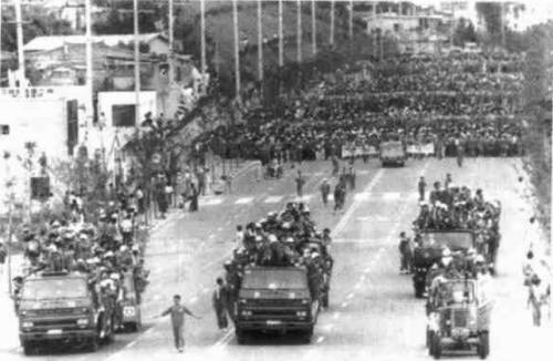 插图十一 现代公司工人1987年8月向蔚山公共体育场进军