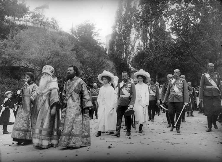 沙皇尼古拉二世走在基辅洞窟修道院(Monastery of the Caves)的院子里,1911年