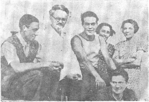 6.普道夫·克勒门特、托洛茨基、伊万·克雷博、让娜·马丹、萨拉·雅各布和让·范·埃热努尔在圣帕莱合影,