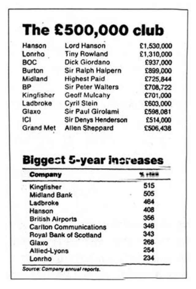 今天《卫报》上登载英国几个大公司头头的薪水,很有趣。把它剪下来贴在此地。